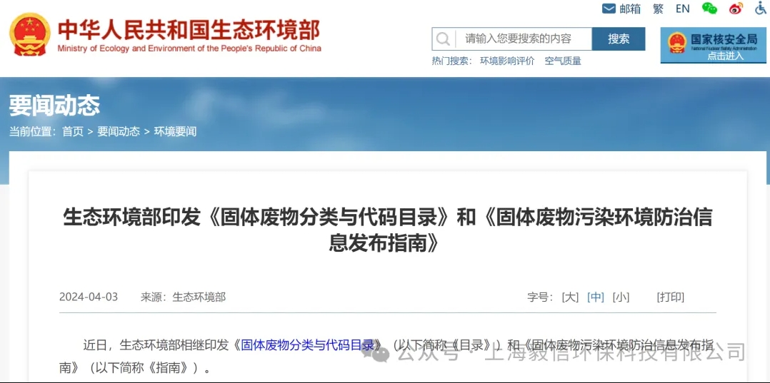 生態環境部近日印發《固體廢物分類與代碼目錄》(以下簡稱《目錄》)和《固體廢物污染環境防治信息發布指南》(以下簡稱《指南》)。 生態環境部在官宣中表示,《目......